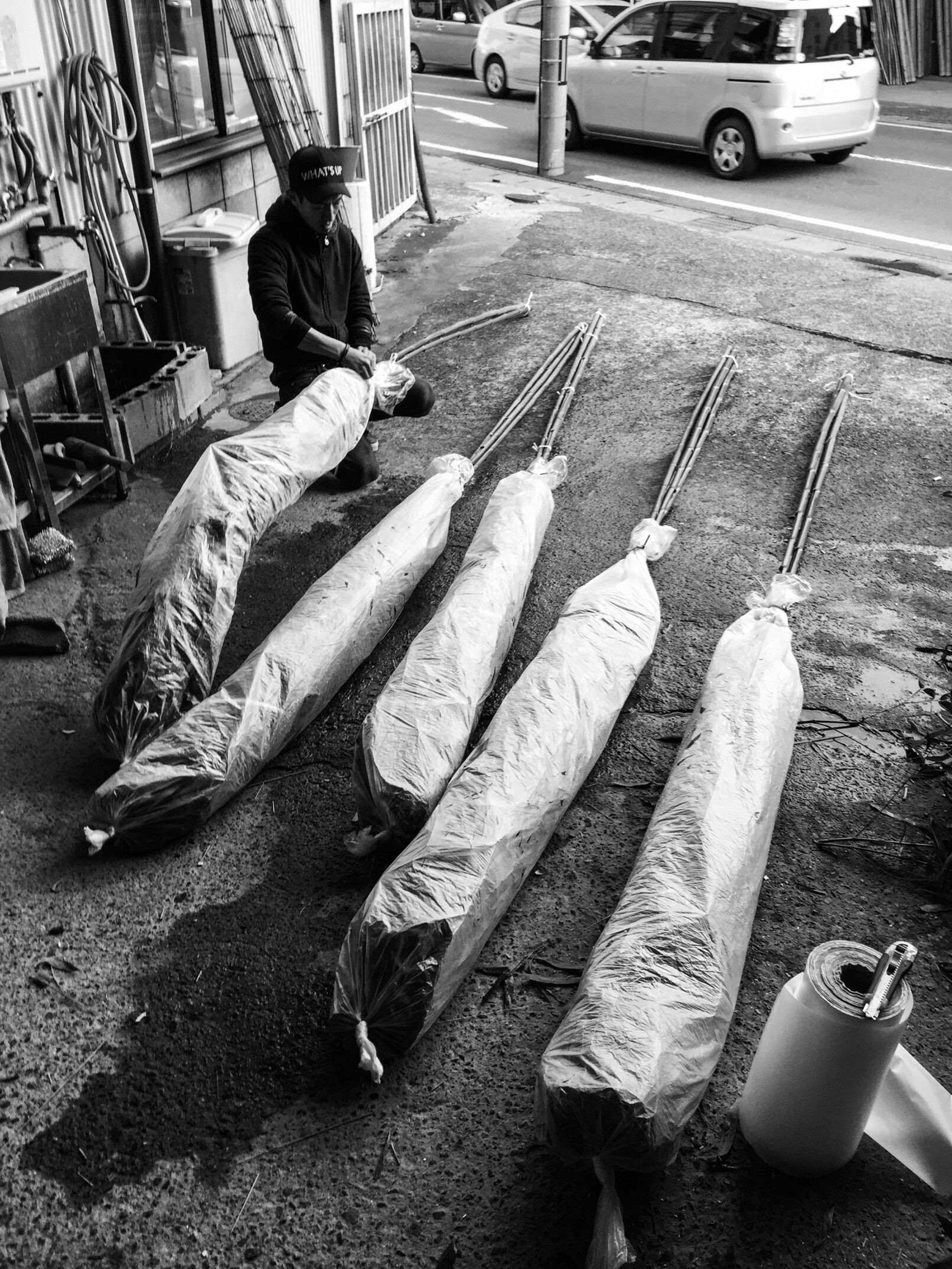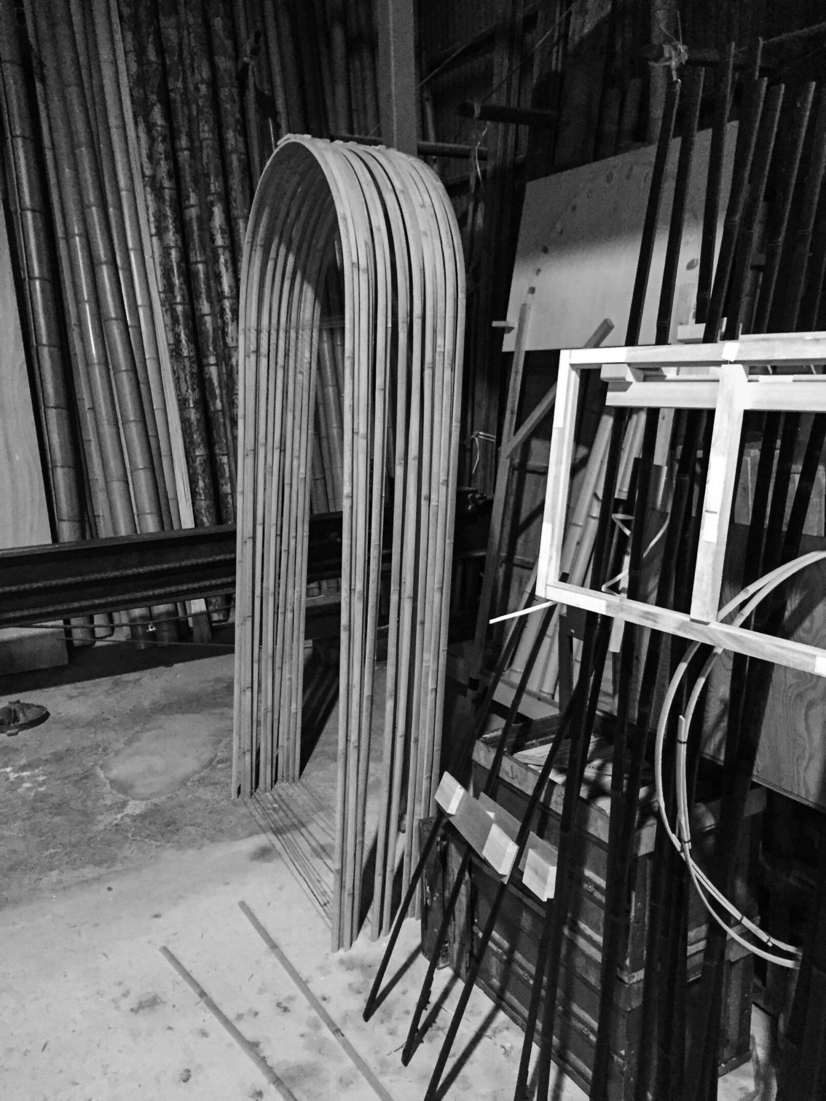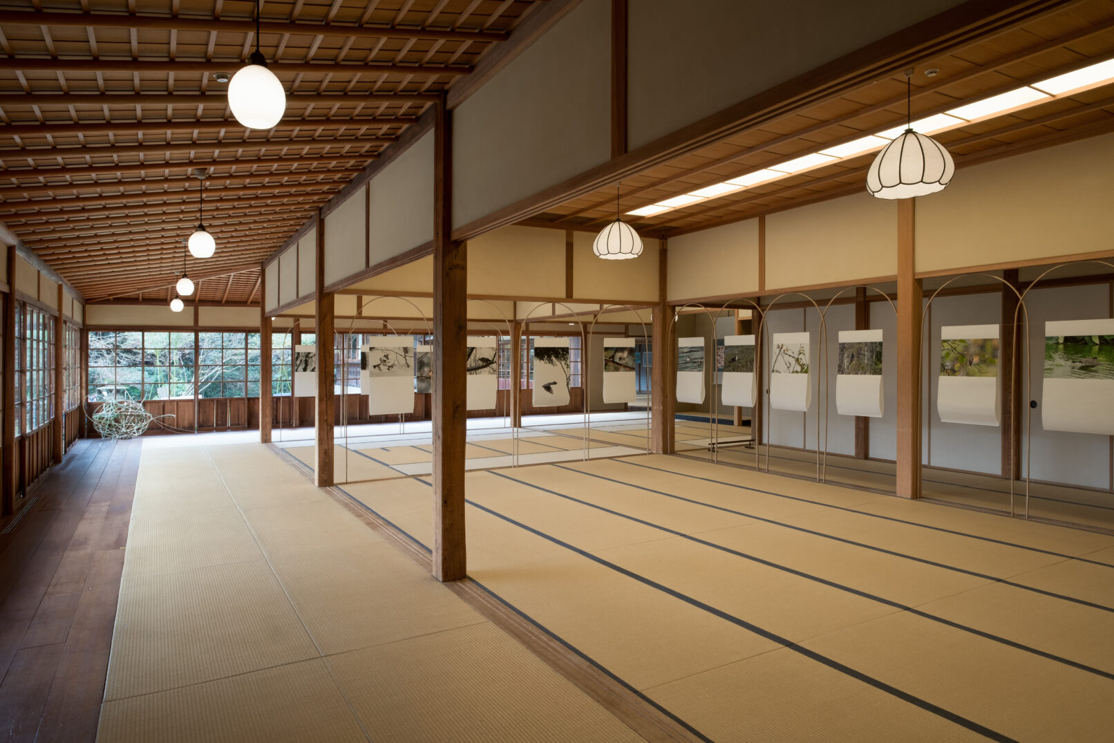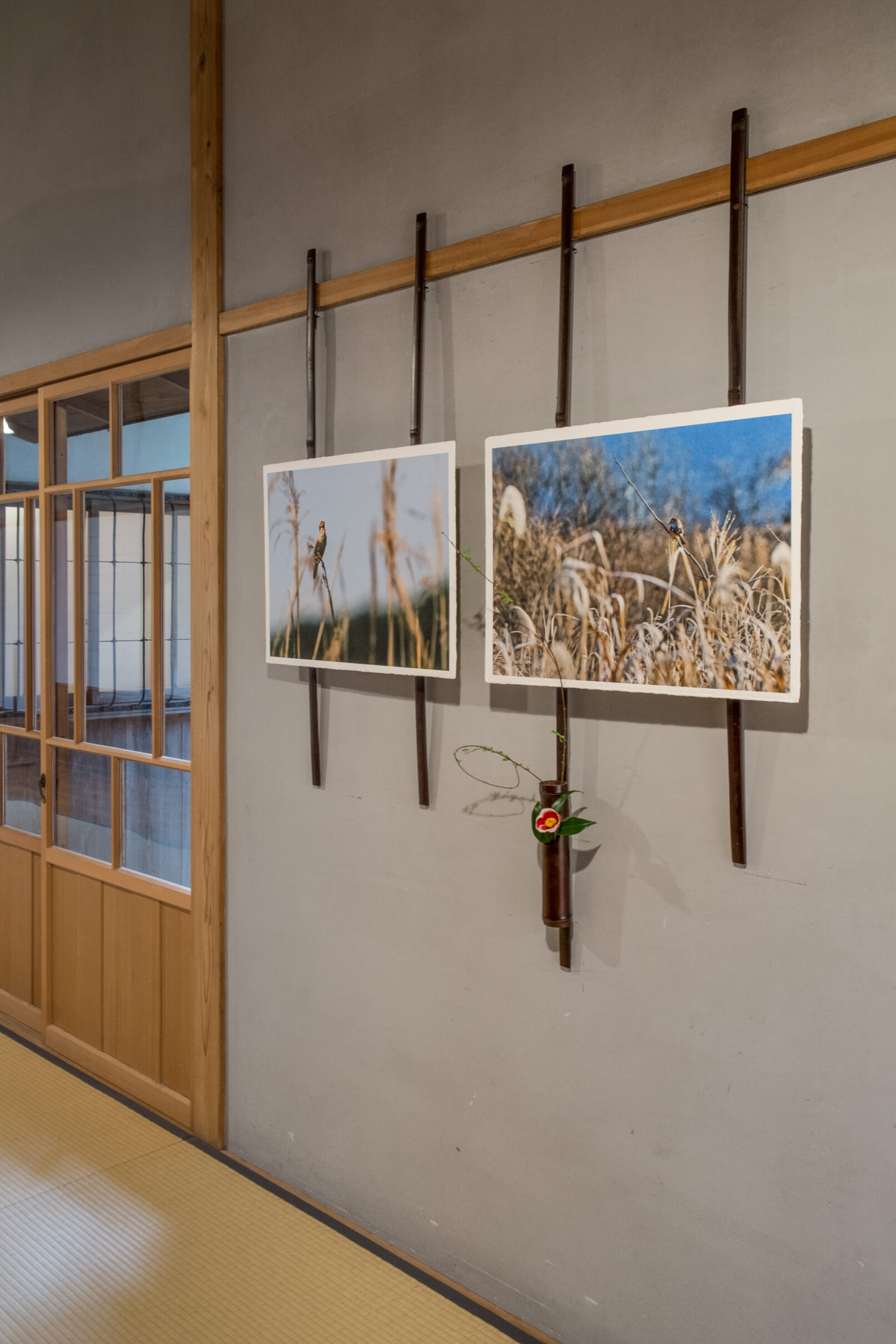 Scenography for Her Imperial Highness (HIH) Princess Takamado’s photography exhibition at Sankeien Garden, a Yokohama Tangible Cultural Property. A thoughtful selection of various bamboo varieties and traditional washi papers were meticulously chosen to showcase the artwork within the building, harnessing the unique qualities of both materials and the historical structure itself.